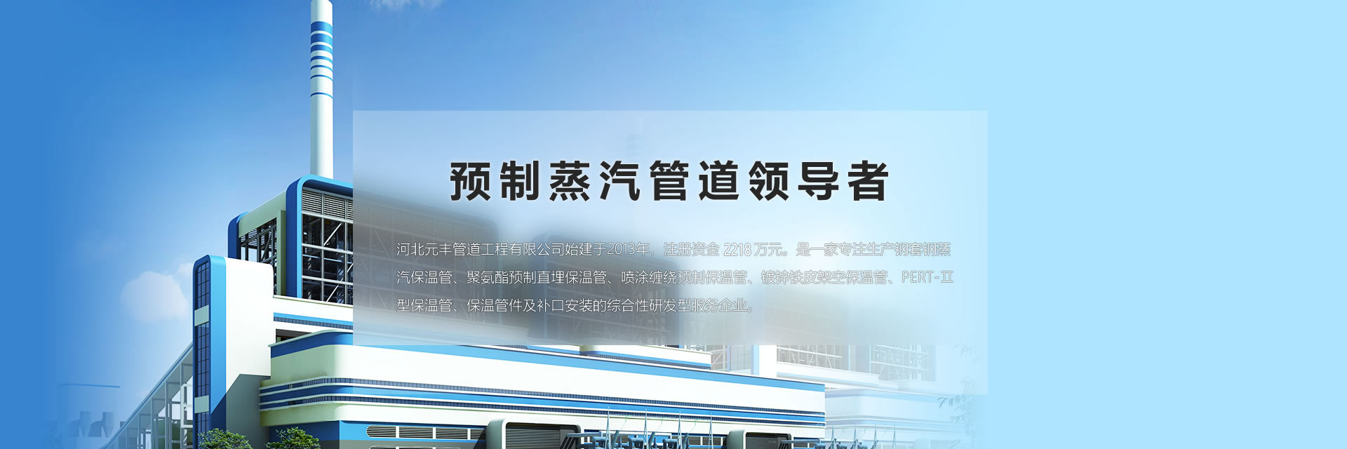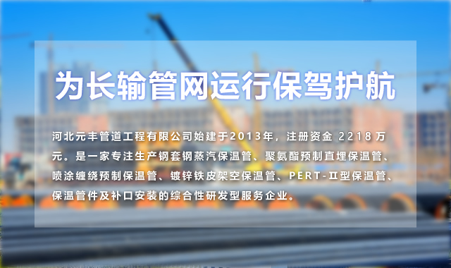 河北元豐管道工程有限公司始建于2013年,注冊(cè)資金2218萬元。是一家專注生產(chǎn)鋼套鋼蒸汽保溫管、聚氨酯預(yù)制直埋保溫管、噴涂纏繞預(yù)制保溫管、鍍鋅鐵皮架空保溫管、PERT-Ⅱ型保溫管、保溫管件及補(bǔ)口安裝的綜合性研發(fā)型服務(wù)企業(yè)。